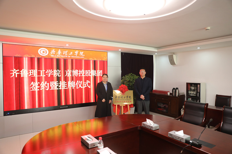 随后,生物与化学工程学院执行院长高星和京博控股集团KG合作管理员许朝阳对大学生实践教学就业基地进行了揭牌。