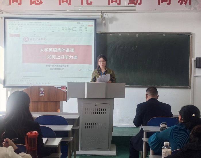 更新时间:2025-09-28 09:11 9月24日下午,基础一部大学英语教研室开展“如何上好听力课”专题集体备课活动,旨在优化教学设计、提升视听说教学效果。活动由蔡秀国主任主持并讲话,全体教师参加。