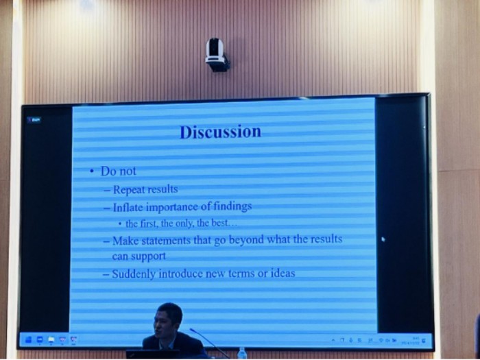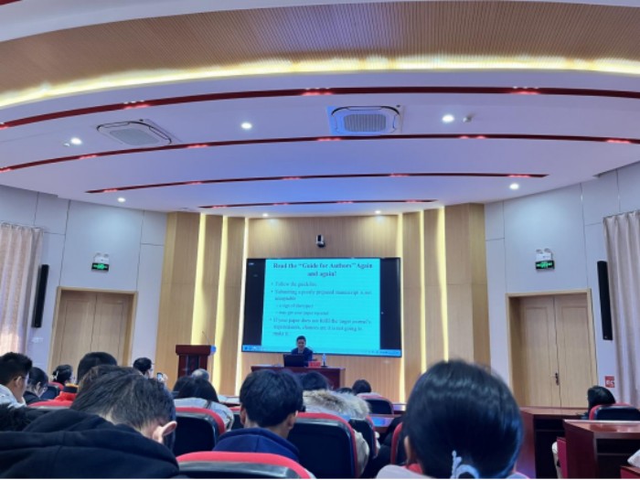 布乃鹏教授在讲座中全面讲解了国际期刊论文发表的关键环节,包括研究论文的选题、写作流程、期刊选择与投稿要求。他指出,随着学术研究竞争的加剧,各类期刊对论文的创新性和规范性要求不断提高,正确选择目标期刊至关重要,教师们需要高效阅读期刊要求并制定合理的投稿计划才能适应学术研究的发展现状。