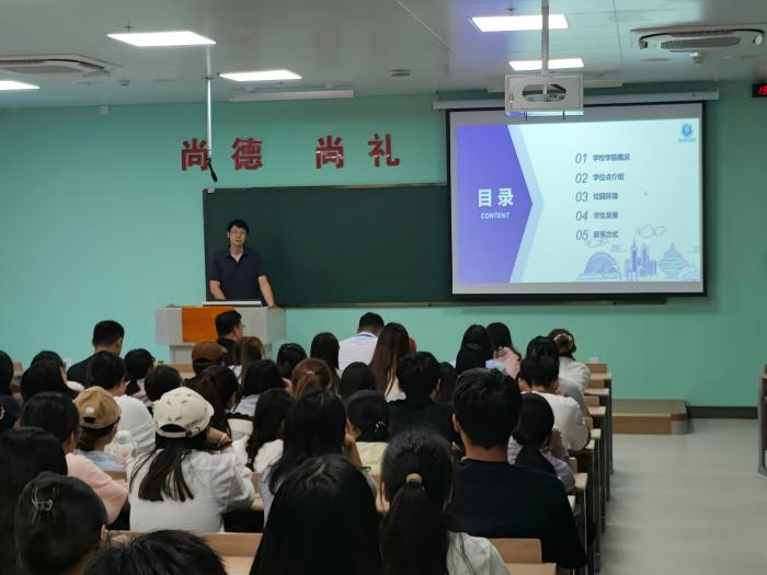 此外,朱教授还通过丰富的图片资料,生动展现了青岛理工大学优美的校园环境、先进的教学设施以及丰富的学生活动,让同学们对未来的学习生活充满向往。在学生发展方面,他介绍了往届毕业生的升学就业情况,展示了学院在高层次人才培养方面取得的显著成效。