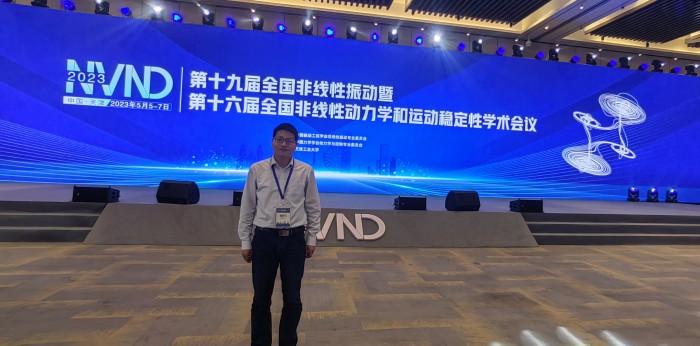更新时间:2023-05-08 09:36 2023年5月5日至7日,“第十九届全国非线性振动暨第十六届全国非线性动力学和运动稳定性学术会议”在天津市召开。本次会议由中国振动工程学会非线性振动专业委员会主办,中国力学学会动力学与控制专业委员会协办,天津工业大学承办。忆阻计算应用协同创新中心雷腾飞老师参加了会议。
