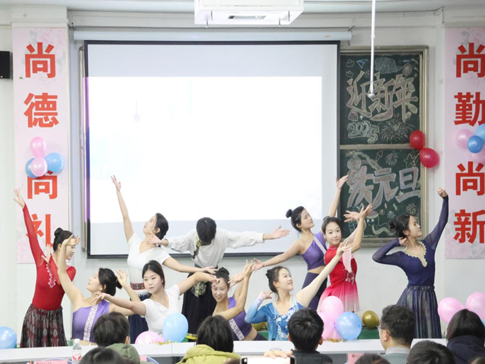 晚会节目由教育学院艺术团精心筹备与策划,为确保演出效果,演职人员和场务人员进行了多次彩排。晚会在充满活力的开场舞中拉开帷幕,瞬间点燃了现场气氛。歌曲演唱展现了同学们的美妙歌喉,悠扬的歌声回荡在教室;舞蹈表演活力四射,舞者们用灵动的舞姿展现青春风采;小品节目凭借幽默的台词和演员们精湛的演技,引得台下掌声与欢笑声不断。最后,全体师生共同合唱《相亲相爱》,温暖的歌声将晚会气氛推向最高潮,也为本次晚会画上了圆满句号。