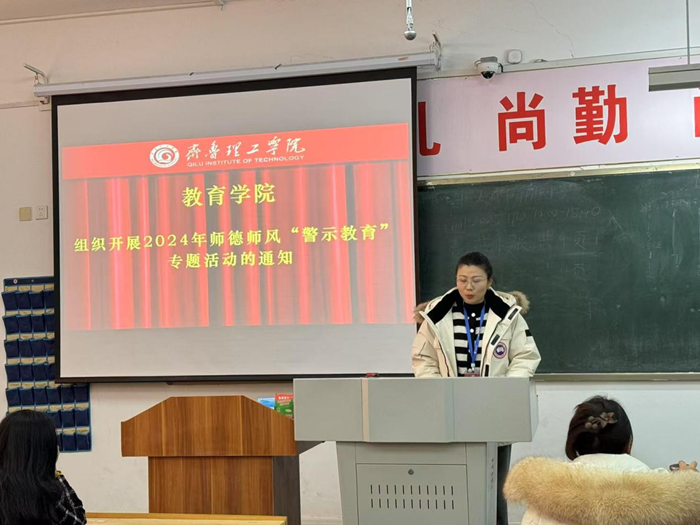 活动伊始,学院根据学校文件要求进行专题学习。本次活动主要师德师风“警示教育”,结合近年来教育行业内的典型违规案例,深入剖析了违反师德师风行为带来的严重后果,强调了坚守师德底线的重要性与紧迫性。讲座内容丰富、案例生动,让在场教师深受触动。