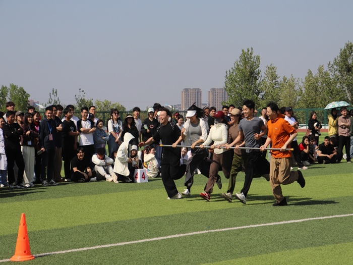 教育学院教师踊跃参与"长杆跑""夹乒乓球""齐头并进""一圈到底"等特色项目。长杆跑考验团队默契,教师们双手共持长杆如离弦之箭;夹乒乓球项目中,他们屏息凝神,用特制长筷完成高难度传递;"齐头并进"则需多人同步跨越障碍,引得现场欢笑连连。