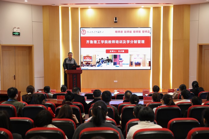 张士国副校长在总结讲话中,提出三点工作要求,一要坚持以“四有”好老师标准为根本遵循,将师德师风建设贯穿培训全过程;二要以教育教学改革需求为导向,通过学分制管理推动教师能力提升;三要强化培训成果转化,在课程创新、课堂革命中彰显齐鲁理工品格。