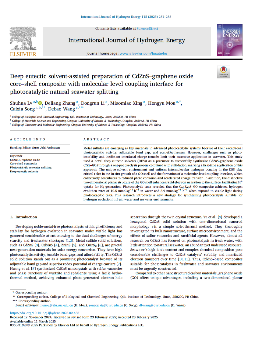 生物与化学工程学院吕淑华在《International Journal of Hydrogen Energy》发表论文