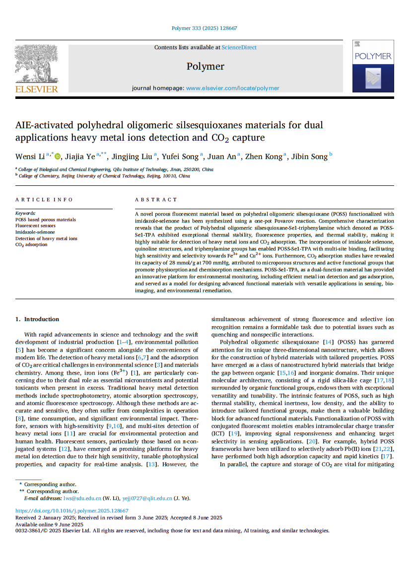 生物与化学工程学院李文思在《Polymer》发表论文