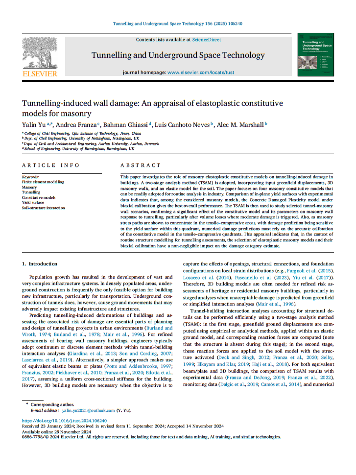 土木工程学院于雅琳在《Tunnelling and Underground Space Technology》发表论文