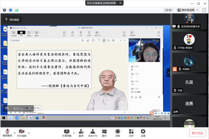 会上,汉语言文学教研室张滨郑老师以实际操作的方式,与各位老师线上交流了腾讯课堂与超星网络平台配合使用的方法和经验。从下载安装、注册登录、课前准备、授课模式、互动工具、教学评价等多方面进行了实际操作,并针对老师们在使用腾讯课堂过程中遇到的问题进行了一一解答和交流。