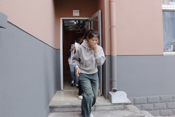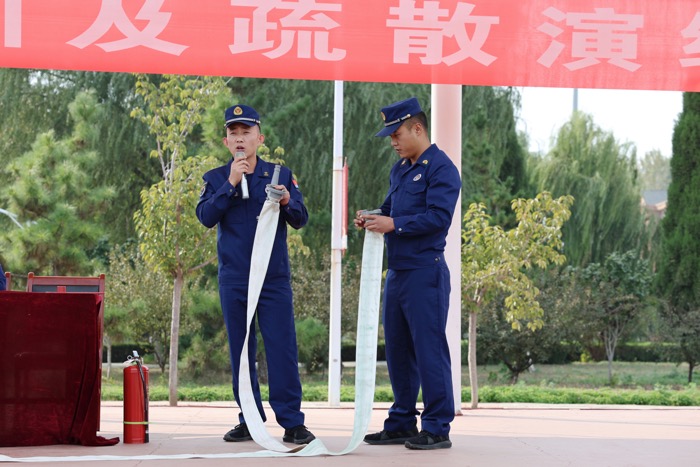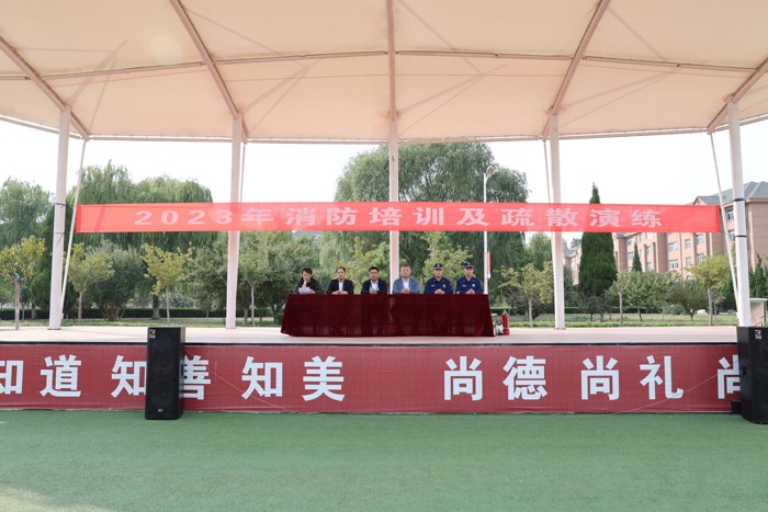 培训会上,曲阜市消防救援大队吴庆利班长围绕“检查消除火灾隐患能力、扑救初起火灾能力、组织人员疏散逃生能力、消防宣传教育培训能力”四个方面向2023级新生做了知识培训,详细讲解了火灾初期的扑救方法、火场逃生与自救常识及常见的火灾原因,现场展示了灭火器以及常备救生设备的使用方法。随后,组织师生在学生公寓开展了消防疏散应急演练。参训师生根据火灾疏散演练方案,在消防指战员的指导下分方向、按路线向安全出口快速疏散,有序到达安全区域,达到了预期效果。
