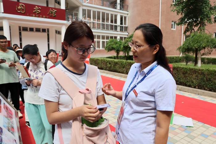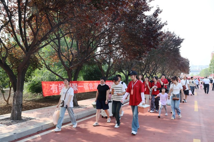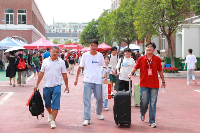 迎新现场,一幅幅精美的欢迎海报、一条条温馨的标语映入眼帘,每一处细节都透露着文学院对新生的殷切期望与热情欢迎。学院领导亲临现场,与新生及家长亲切交流,了解他们的需求,解答他们的疑问,让新生们感受到了学院领导亲切关怀。在迎新过程中,文学院特别安排了志愿者服务队,他们身着统一的服装,面带微笑,穿梭在人群中,为新生提供行李搬运、报到指引、校园介绍等全方位服务。一声声“欢迎来到文学院”不仅传递了学院的热情,更让初来乍到的新生感受到了家一般的温暖与关怀。