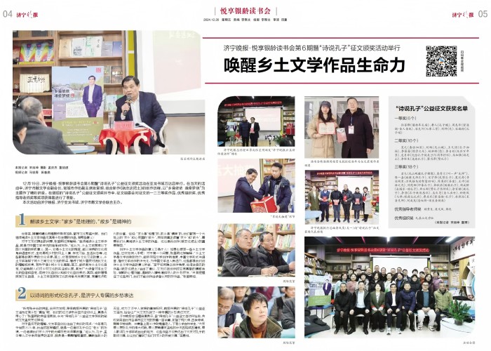 “诗说孔子”是《济宁晚报》举办的用诗歌形式表现齐鲁优秀传统文化的全国征文大赛,旨在推动齐鲁优秀传统文化的传承与推广。大赛收到征文稿件两千多件,经过专家严格评选,评出各类奖项等若干,其获奖者多为文学创作名家,我院学生周奕彤获奖,难得可贵。同时,文学院杨景生教授荣获《济宁晚报》“诗说孔子”全国征文大赛优秀指导教师奖。
