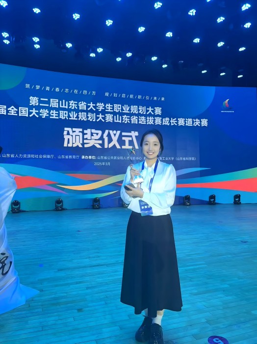 更新时间:2025-03-11 17:02 3月10日,文学院陈佳姝同学在山东省大学生职业生涯规划大赛中凭借扎实的专业素养、清晰的职业规划和出色的表达荣获本次大赛铜奖。