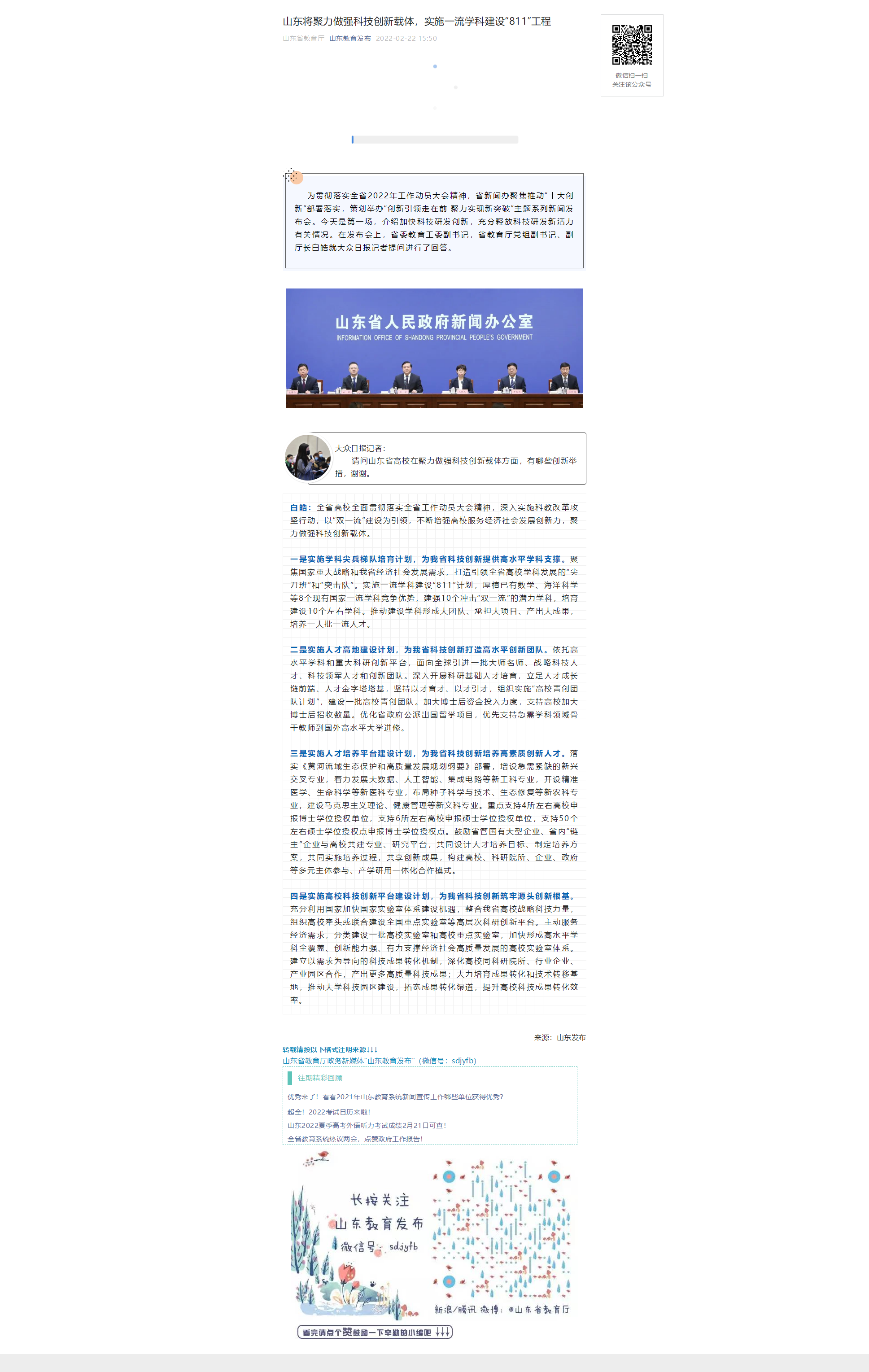 山东将聚力做强科技创新载体,实施一流学科建设“811”工程