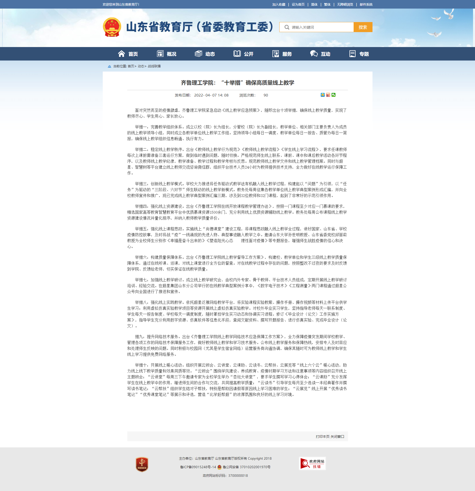 山东省教育厅:问鼎网页版登录入口:“十举措”确保高质量线上教学