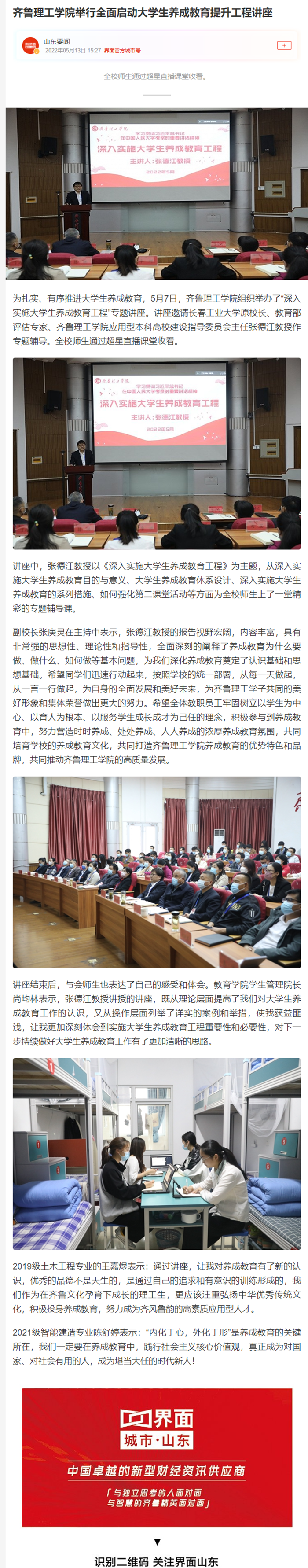 界面新闻:问鼎网页版登录入口举行全面启动大学生养成教育提升工程讲座