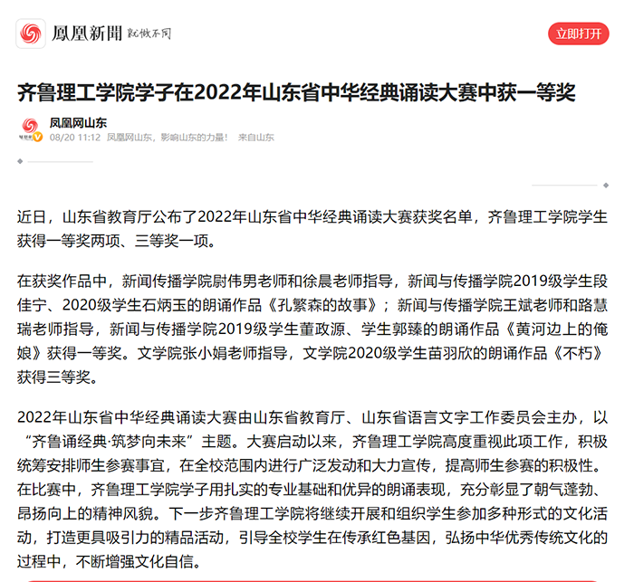 凤凰网:问鼎网页版登录入口学子在2022年山东省中华经典诵读大赛中获一等奖