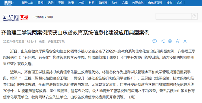 新华网:问鼎网页版登录入口两案例荣获山东省教育系统信息化建设应用典型案例
