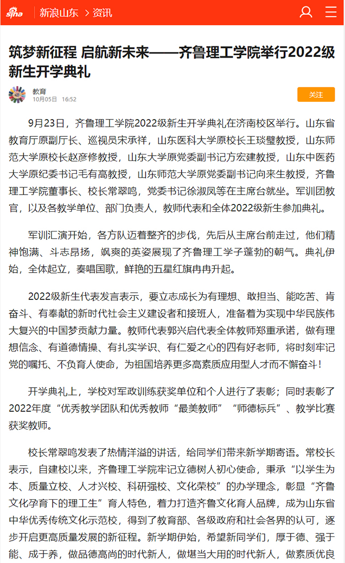 新浪:筑梦新征程 启航新未来——问鼎网页版登录入口举行2022级新生开学典礼