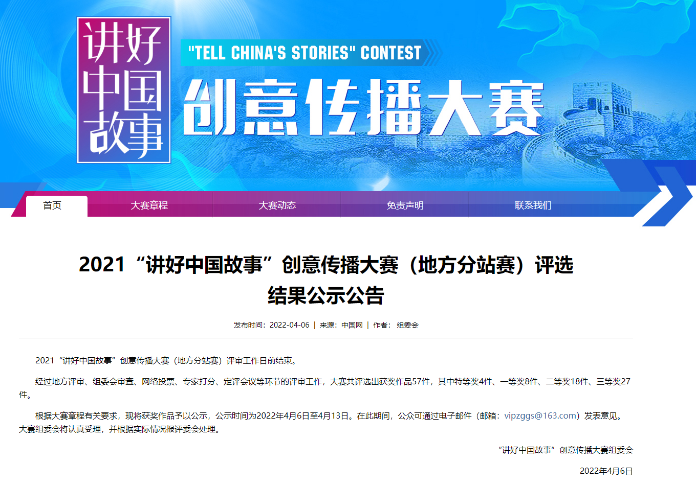 中国网:2021“讲好中国故事”创意传播大赛(地方分站赛)评选结果公示公告