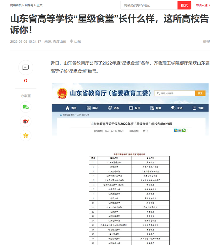 网易:山东省高等学校“星级食堂”长什么样,这所高校告诉你!