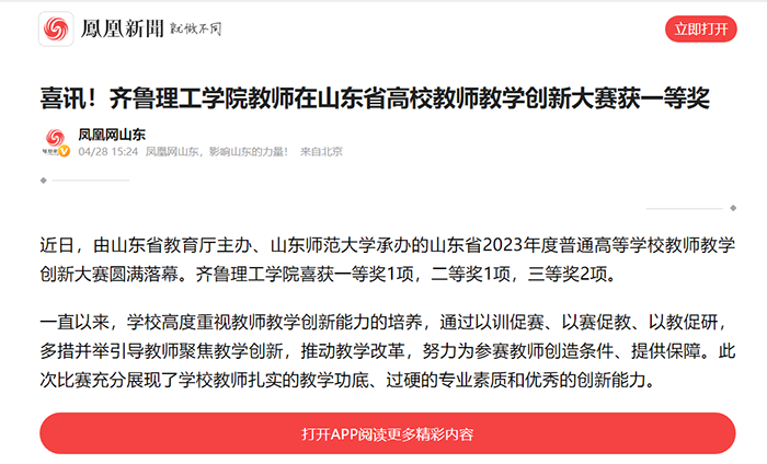 凤凰网:喜讯!问鼎网页版登录入口教师在山东省高校教师教学创新大赛获一等奖
