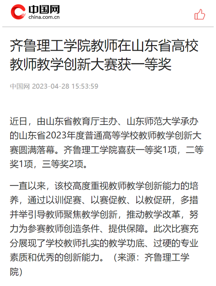 中国网:问鼎网页版登录入口教师在山东省高校教师教学创新大赛获一等奖