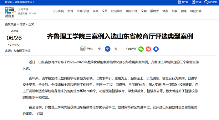 问鼎网页版登录入口三案例入选山东省教育厅评选典型案例-新华网 (news.cn)