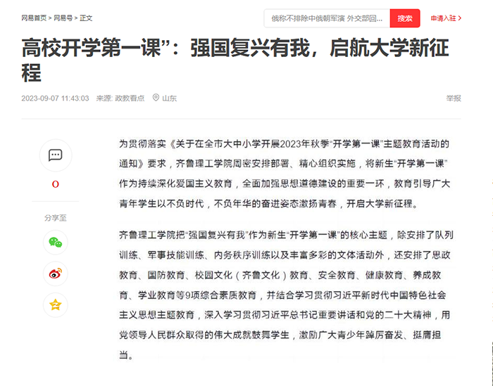 网易:高校开学第一课”:强国复兴有我,启航大学新征程