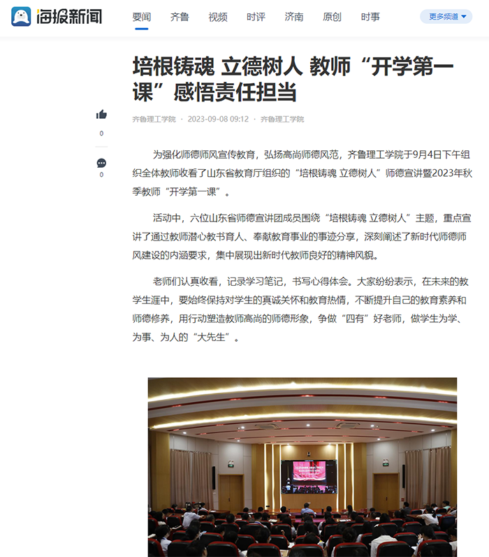 海报新闻:培根铸魂 立德树人 教师“开学第一课”感悟责任担当
