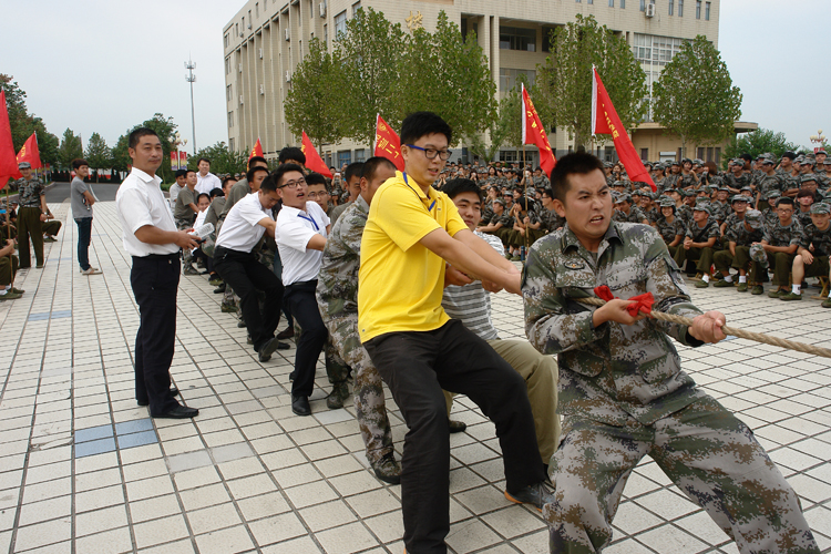 最后,由军训教官、辅导员、教师组成的联队与获得第一名的机电工程学院代表队进行了友谊比赛,把此次活动推向高潮。