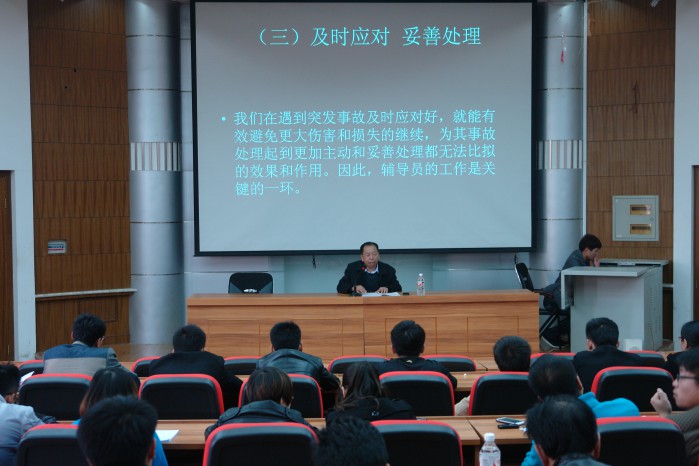 此次培训内容包括《高等学校辅导员职业能力标准(暂行)》,基础知识培训与测试,法律法规知识,党的十八大、十八届三中、四中全会精神,习近平总书记一系列重要讲话精神,公文写作,如何开好主题班会等。培训结束后,还对学习内容进行闭卷考试,考试成绩作为辅导员考核的一项重要内容。