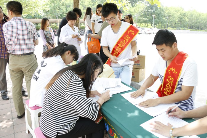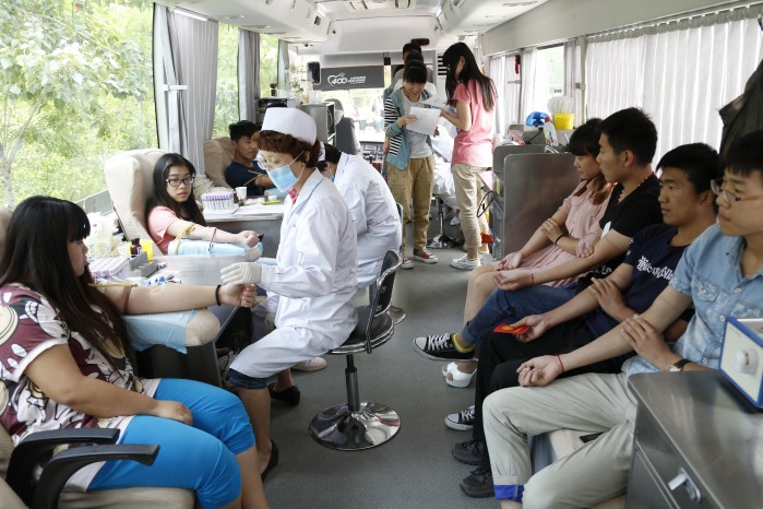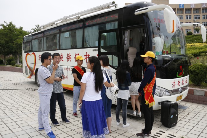 上午9点,当济南市采血中心的爱心献血车开进校园时。现场的志愿工作者已将横幅、展板、桌椅等所需物品准备就绪,不一会儿,采血车前就挤满了前来献血的师生员工。13级电子信息工程1班的方涛同学说:“自己一直想参加献血活动,但总因为有所恐惧,而一次次错过。后来,受到主动献血同学的感染和影响,我也勇敢地挽起了衣袖。”团委副书记