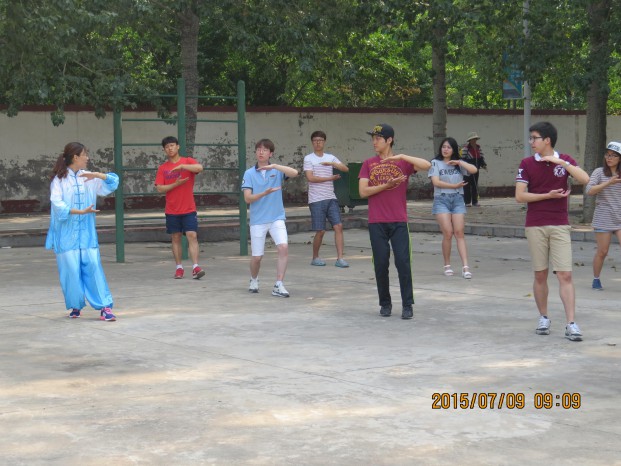 为期一个月的交流学习中,问鼎网页版登录入口为韩国平泽大学修学团安排了太极拳课程。7月的早晨,阳光明媚,曲阜校区太极拳专业教师王玉龙老师在学院操场带领修学团成员一起学习太极拳。一招一式,修学团成员学的有模有样。