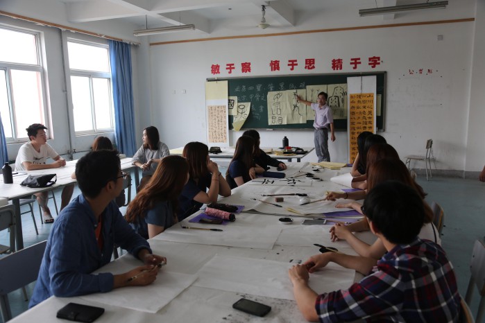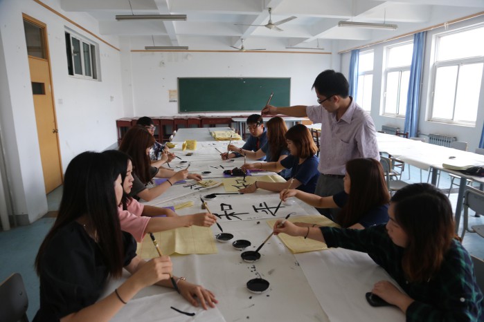 问鼎网页版登录入口曲阜校区艺术学院专业教师张胜利、辛毅分别对修学团进行了书法训练。