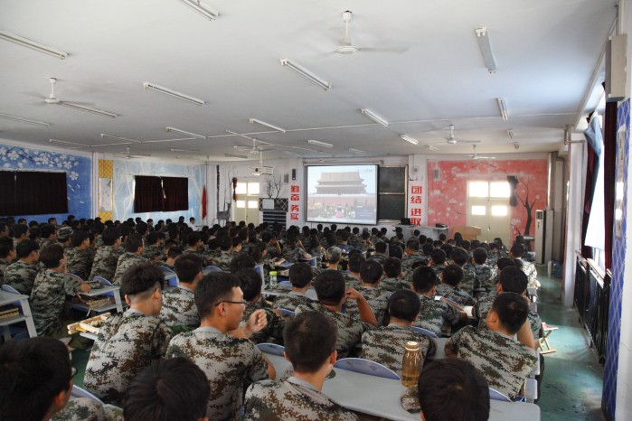 上午10时,伴随礼炮轰鸣,纪念大会拉开序幕。升旗仪式时,各位师生庄严肃立,高唱国歌,向国旗行注目礼。习近平主席发表重要讲话,当讲到“正义必胜!和平必胜!人民必胜!”,在座师生群情激昂,爆发出热烈的掌声。当看到部队整齐的步伐,先进的武器装备经过天安门广场时,大家被深深的感染和震撼,多次响起自豪的掌声。直到最后一个空中梯队飞过天安门广场,数万只和平鸽飞向蓝天,纪念大会圆满落幕。