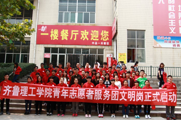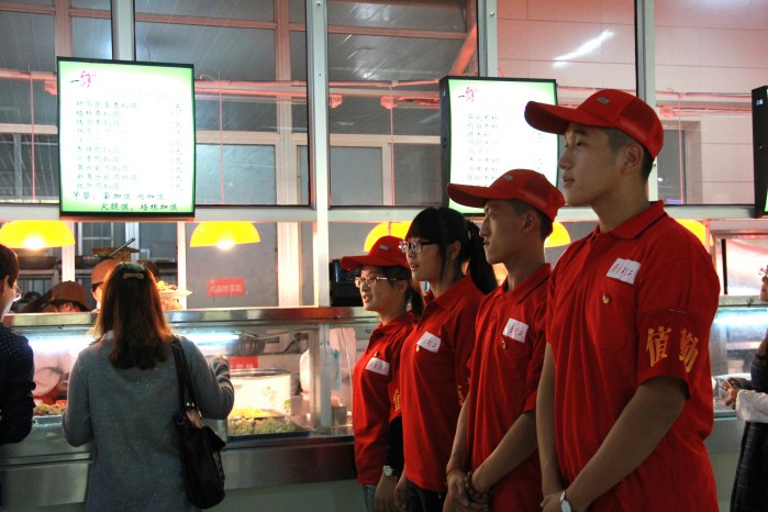 2015年10月15日,问鼎网页版登录入口青年志愿者服务团文明岗在食堂正式启动。院团委副书记史雪老师出席并指导了本次活动。
