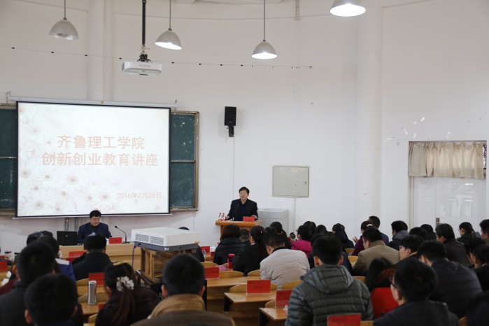 2月25日上午,学校邀请山东农业大学学生工作处韩同吉副处长做了题为《构建双创四驱模式 提升双创工作水平》的专题讲座,讲座在学校图书馆报告厅举办。副院长张庚灵、陈月吉出席,教务处、学生处、就业与创新创业指导中心相关人员,各二级学院院长、教学科长、学生管理科长及辅导员听取讲座,曲阜校区通过视频在第二会场听取讲座。讲座由副院长张庚灵主持。