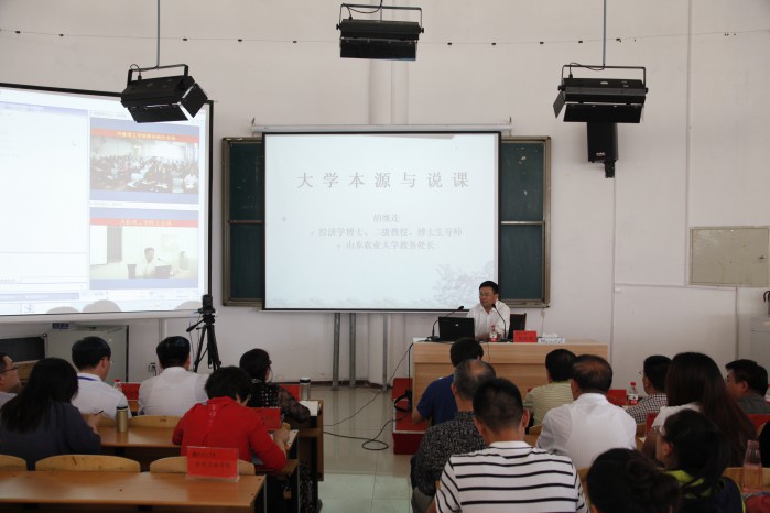胡继连教授的讲座从大学本源说出发,结合自身教学、科研、管理等方面的经验,系统讲述了怎样“用爱心教书”,他表示做好老师就是要有仁爱之心,通过真情、真心、真诚拉进学生的距离,滋润学生的心田,用欣赏增强学生的信心,用信心树立学生的自尊,把课堂当成师生交流的宴会,做学生的人生导师,让每一个学生都健康成长。同时胡处长还结合自己讲述的《资源经济学》给大家讲述了如何“说好课”。