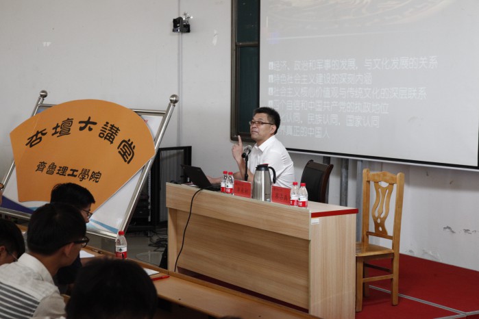 6月27日,曲阜师范大学国学院执行院长、文学院院长、博士生导师单承彬教授做客我校“杏坛大讲堂”,为我校学生作了“大学生如何学习传统文化”的专题报告。报告会由党委副书记苏占兵主持。