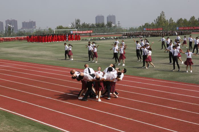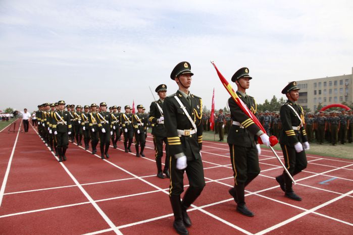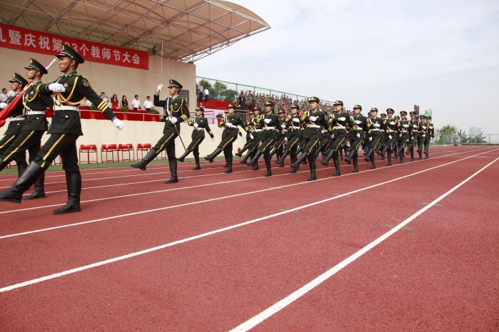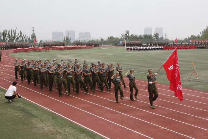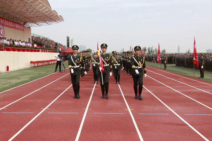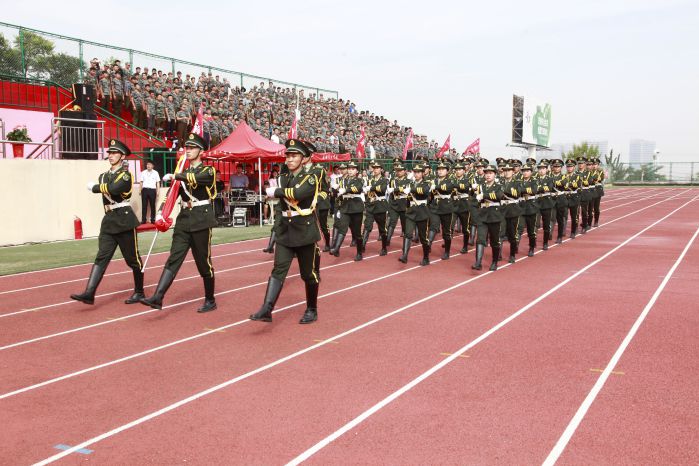 伴随着庄严的国歌,鲜艳的五星红旗冉冉升起,大会正式开始。激动人心的分列式表演随即拉开大幕。各个方队和着激昂的乐曲先后从主席台前经过,他们步调一致、队伍整齐划一、口号嘹亮,以昂扬的斗志和雄壮的气势向与会领导和老师展示了军政训练的优秀成果以及当代大学生昂扬勃发的精神面貌,赢得了现场阵阵掌声。