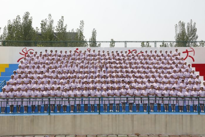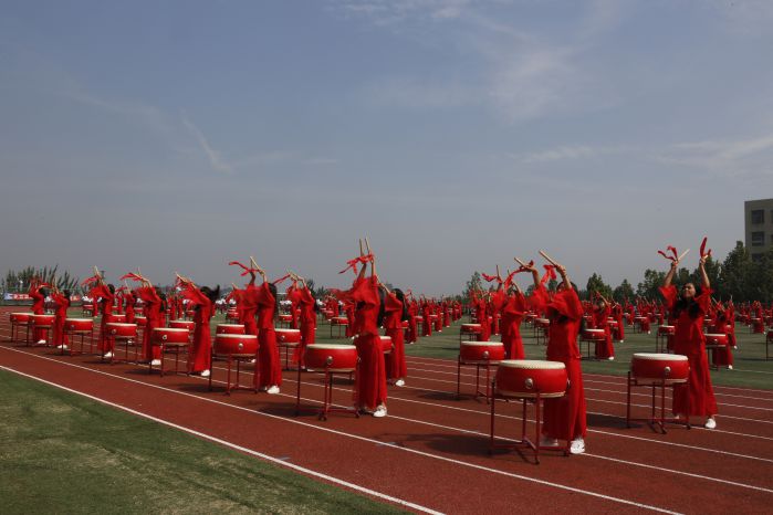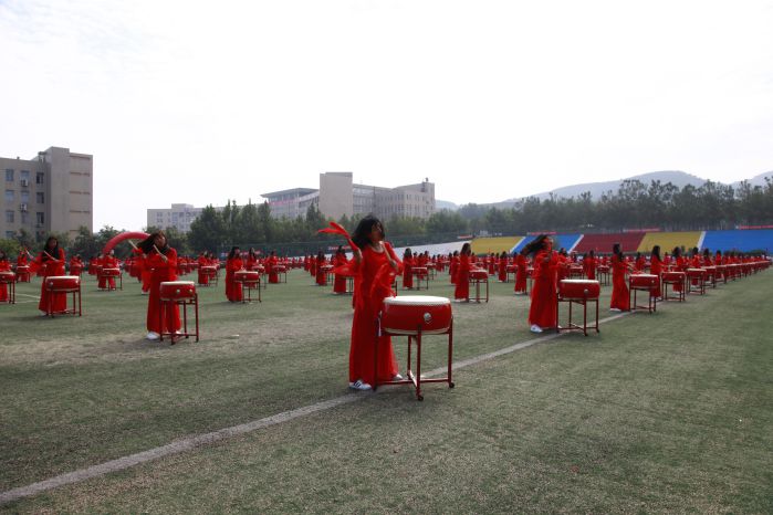 随后,2017级新生大型团体项目表演开始。首先上场的是铿锵有力的中国鼓,200名学子鼓槌飞抡,鼓声雷动,恰似彩云在天空飞舞;阵容强大的啦啦操表演和着轻快的旋律,整齐划一,活力四射;军体拳表演一招一式动作精炼,节奏分明,淋漓尽致的展现出了军人的风貌;歌舞《青春圆舞曲》优雅十足,充满青春活力;护理学院手语操《感恩的心》动作整齐,着装统一,以优美的肢体语言演绎出了真挚的感恩之心,充分展现了未来白衣天使的风采。