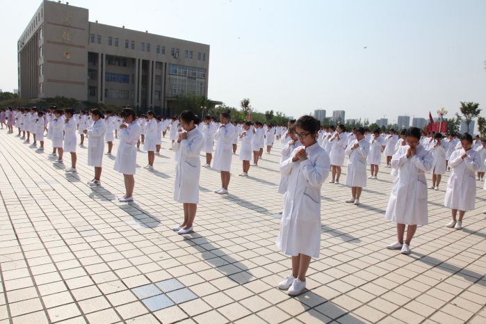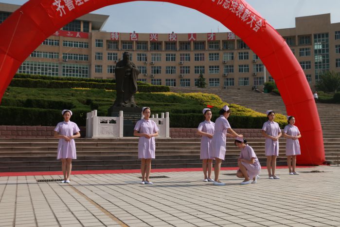 护理学院全体学生表演了手语操《感恩的心》,表达了为患者无私奉献、以拯救人类健康为己任的理想与追求。
