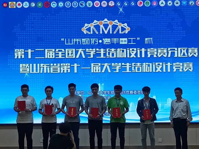 5月18日-20日,为期3天的第十二届全国大学生结构设计竞赛分区赛暨山东省第十一届大学生结构设计竞赛在山东建筑大学博学会堂举行。我校土木工程学院教师张玉敏、徐国梁指导,参赛队员顾秋雨、王亚慧、李广虎设计的作品“安之一隅”以出色的成绩荣获二等奖。