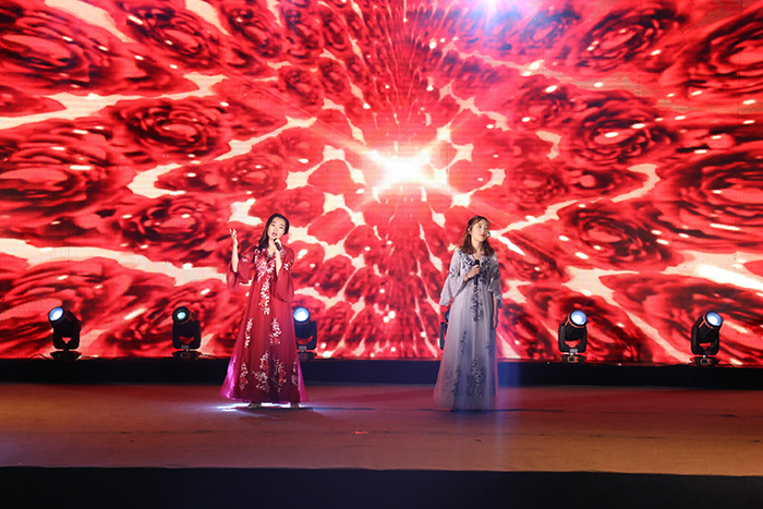 在前期各二级学院初赛的基础上,此次有12首作品进入最终决赛。有大气磅礴、旋律优美的民族歌曲;有催人奋进、久唱不衰的经典名曲;也有安静温暖、触动心灵的爱的颂歌。比赛中,选手们用歌声致敬经典,全情投入,以优美的歌声和饱满的热情为改革开放四十周年献礼。一首首高亢、动听的歌曲,无不歌颂着改革开放40年来的巨大变迁,以及对祖国的无限热爱。选手们倾情演唱,用动听的歌声和不俗的舞台表现给观众们带来了一场视听觉盛宴。