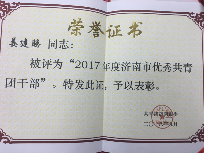 近日,共青团济南市委下发《关于2017年度五四系列表彰的决定》,商学院、护理学院团总支荣获“济南市五四红旗团总支”称号;机械与车辆工程学院团总支书记姜建腾荣获“2017年度济南市优秀共青团干部”称号;土木工程学院2014级土木工程二班学生陶林、商学院2015级贸易经济一班学生黄玉立、电气信息工程学院2015级电子信息工程班学生李鸿明荣获“2017年度济南市优秀共青团员”称号。