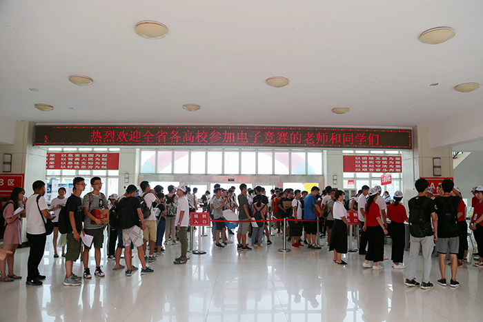 竞赛工作人员和志愿者热情的为参加竞赛的学生办理审核和报到手续