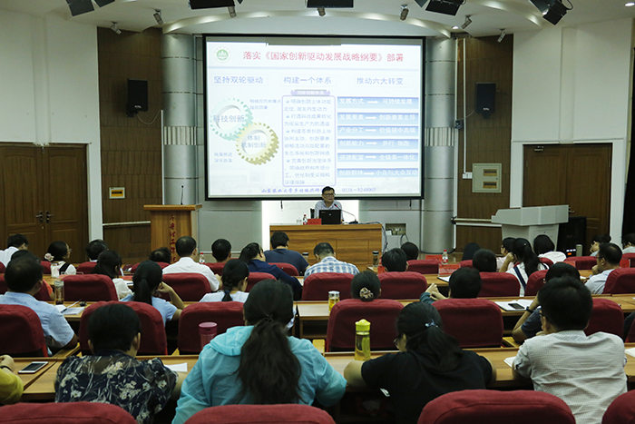 9月1日上午,学校邀请山东农业大学米庆华教授在实验楼报告厅做了关于“科技创新与科研项目申报”的专题报告,校长常翠鸣出席会议;校领导,学校科级以上干部,专业、教研室、实验教学中心、创新平台、研究所、教研科研项目、精品课程等负责人,骨干教师参加报告会。报告会由副校长张庚灵主持。