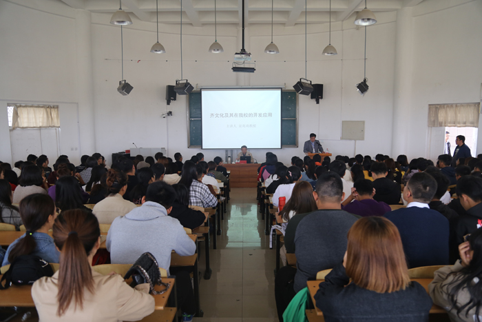 讲座中,宣兆琦教授运用翔实的素材,从历史和现实的角度,围绕什么是齐文化、齐文化的代表人物、齐文化的主要内容和主要特点,以及齐文化在我校的开发应用等内容展开,深入剖析了齐文化与社会主义核心价值观以及科学人文艺术之间的紧密联系,指出传承和创新齐文化对于实现中华民族伟大复兴的中国梦,对于丰富校园文化、提升校园文化品位都具有极其重要的推动作用。