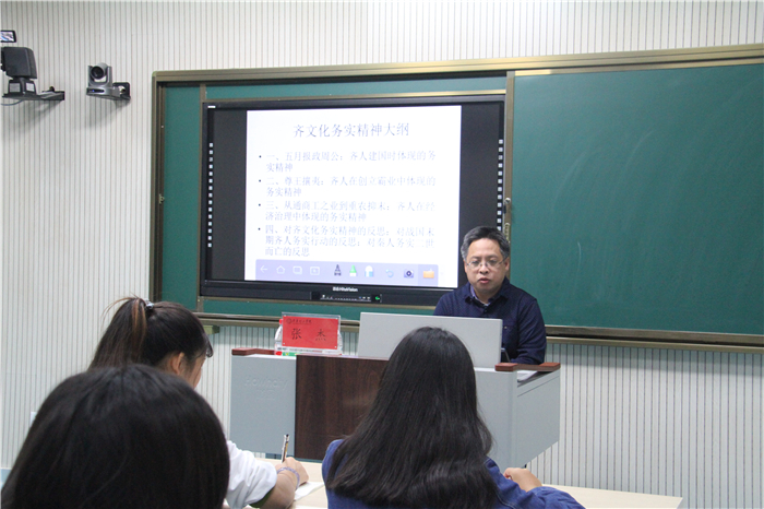 讲座以“齐文化中的务实精神”为题,从“五月报政周公”:齐人建国时体现的务实精神;尊王攘夷:齐人在创立霸业中体现的务实精神;从通商工之业到重农抑末:齐人在经济治理中体现的务实精神三个方面讲述了齐文化的务实精神。最后对齐文化的务实精神进行了反思,找到了齐国衰亡深层的原因,并对秦人极端务实二世而亡进行了反思,说明务实应有极限,反之会带来严重后果。